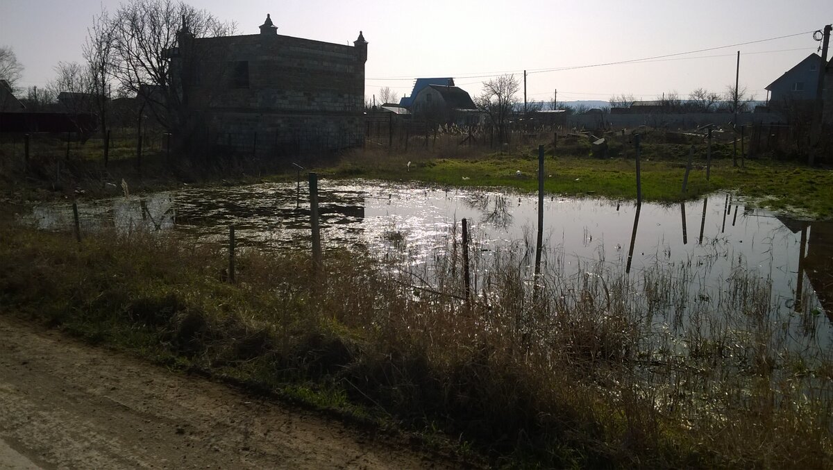 Цели для приобретения дачного участка у каждого свои. Кто-то хочет просто удачно вложить деньги в недвижимость, чтобы в будущем продать дороже. Кто-то покупает, чтобы на участке построить дом. А кто-то просто хочет выращивать на земле фрукты и овощи. Но какими бы не были истинные причины для покупки, наряду с другими важными составляющими, участок должен быть сухим. Его не должно затапливать в зимний период. В Крыму эта проблема очень актуальна, по крайне мере у нас в Феодосии. В нашем дачном кооперативе, где находится наш участок, такая земля встречается. Сегодня ехали и я специально остановилась сфотографировать. Лето в Крыму засушливое, дожди идут редко и в такой сезон не возможно оценить все минусы участка. Летом они стоят сухие, а какой продавец сознается вам, что его участок зимой залит водой. Думаю таких нет. Но многие приезжают именно летом, покупают, начинают строительство, а весной приходят в шок. Как эти люди например. Очень жаль их. Прошлым летом они купили этот участок, з