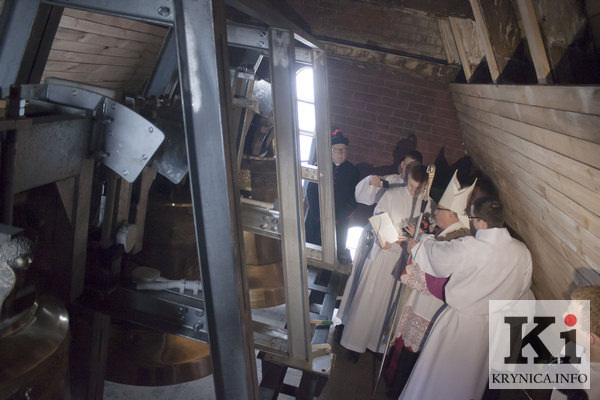 На башне Красного костела в Минске 17 февраля состоялась инаугурация трех колоколов, которую возглавил митрополит Минско-Могилевский, архиепископ Тадеуш Кондрусевич. Три колокола - колокол Олимпии, Симеона и Елены, колокол Слуги Божьего Эдварда Вайниловича и колокол Архангела Михаила - были отлиты польской фирмой RDUCH, на них планировалось собрать 70 тыс. евро. Как отметил архиепископ, колокола - это не только красивый музыкальный инструмент, но, прежде всего знак евангелизации, который пробуждает человеческую совесть, призывает к молитве. Фото Надежды Гацак