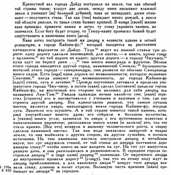 «…землемеры и ученые Хитая, проявляя осторожность утверждали, что суда могут доходить до Хан-Балыка из большинства областей Хитая, из столицы Манчина, из города Хингсай, из Зейтуна, …гавани Хиндустана …до которых 40 дней пути».