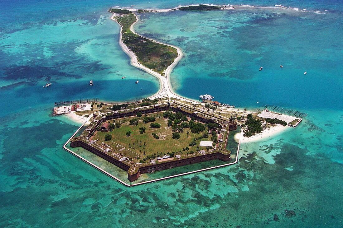 Покинутый форт XIX века на острове Гарден-Ки. В 1846 году началось строительство форта, названного в честь президента Томаса Джефферсона. В 1865 году в Форт-Джефферсон были сосланы участники заговора с целью убийства президента Линкольна. 4 января 1935 года президент Франклин Рузвельт во время посещения островов Флорида-Кис объявил форт национальным памятником. 10 ноября 1970 года Форт-Джефферсон был включён в Национальный реестр исторических мест США.