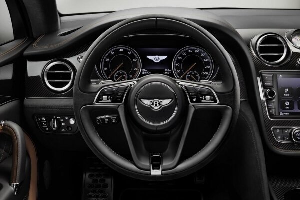Роскошный большой кроссовер Bentley Bentayga обзавелся топовой модификацией Speed. По словам представителей британской марки, новая модель является самым быстрым внедорожником в мире – его мировая премьера пройдется на автосалоне в Женеве 2019. Отличить новый Бентли Бентайга Спид от стандартного варианта можно по затонированным фарам, зачерненным решетке радиатора и грилям в переднем бампере. Боковые “юбки” модификации окрашены под цвет кузова, на крыше появился массивный спойлер, а на колесах красуются 22-дюймовые легкосплавные колеса, плюс в наличии особые шильдики. Каталог Bentley Салон внедорожника отделан алькантарой и кожей с ромбовидной прострочкой. На передней панели со стороны пассажира в глаза бросается декоративная накладка со светящейся надписью “Speed”. Название модификации можно увидеть и на порогах автомобиля. В движение Bentley Bentayga Speed 2019 приводит 6,0-литровый W12 с двумя турбинами, отдача которого была увеличена до 636 л.с. (+ 26), крутящий момент при этом