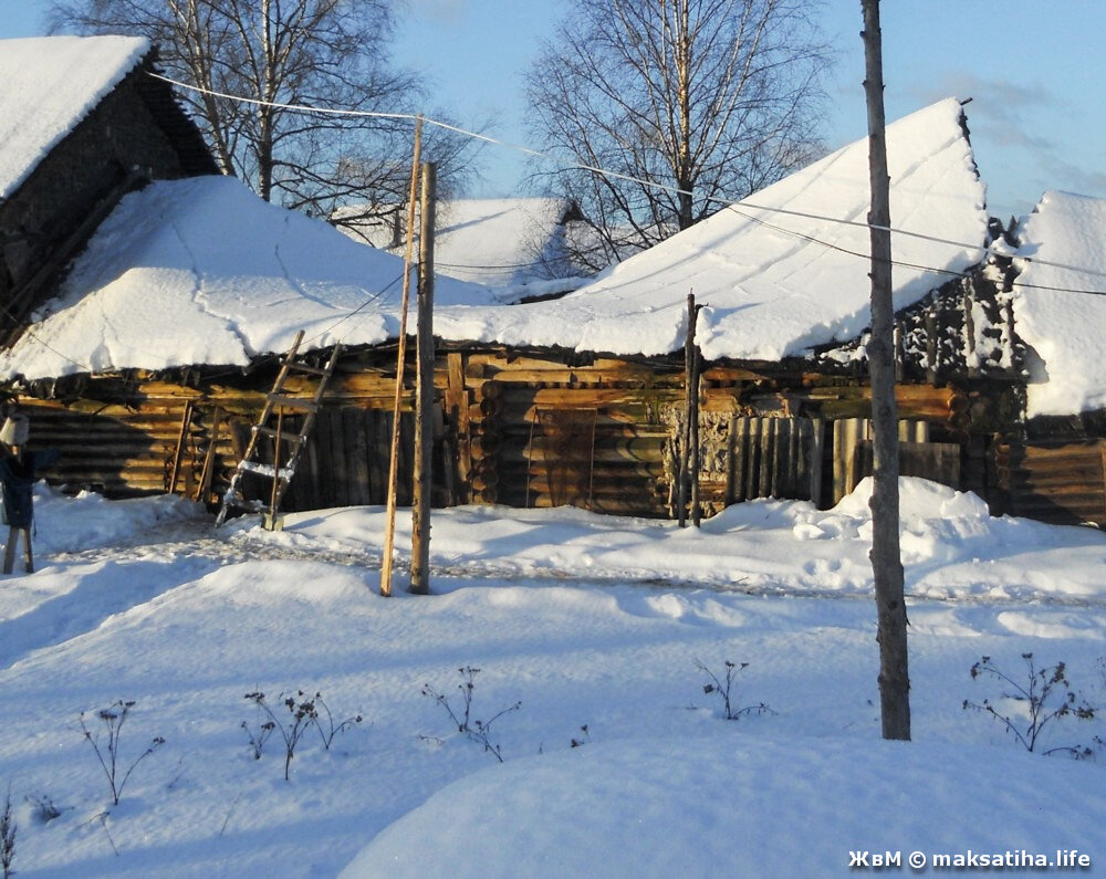Не только в городах под тяжестью мокрого снега дома рушатся, но и в деревне некоторые строения не выдерживают. Вот, например, вчера крыша и моего сарая позорно распласталась, сделав его отдалённо похожим на китайскую пагоду. Кто-то спросит — «А в чём радость?» Отвечаю. Во-первых, никто не пострадал, даже ни одну курицу не ушибло. Во-вторых, у меня за всю жизнь такое впервые, а это, как-никак, новые ощущения. В-третьих, наконец, у меня появился отличный повод сделать что-то радикальное со всей этой полусгнившей конструкцией. И то сказать — каждый год сарай уходил в землю на 7-8 см. А ведь я в него когда-то легко на "головастике" заезжал. Сложился сарай с каждой стороны по-своему. Со стороны заулка, как видно на предыдущей фотографии, слеги остались в своих пазах, а вот со стороны огорода из них выскочили и там крыша сползла практически до земли. Первым делом, конечно, придётся убрать снег. Потом быстро залатать то, что можно. И приступать к строительству нового сарая. Думаю — каркасного