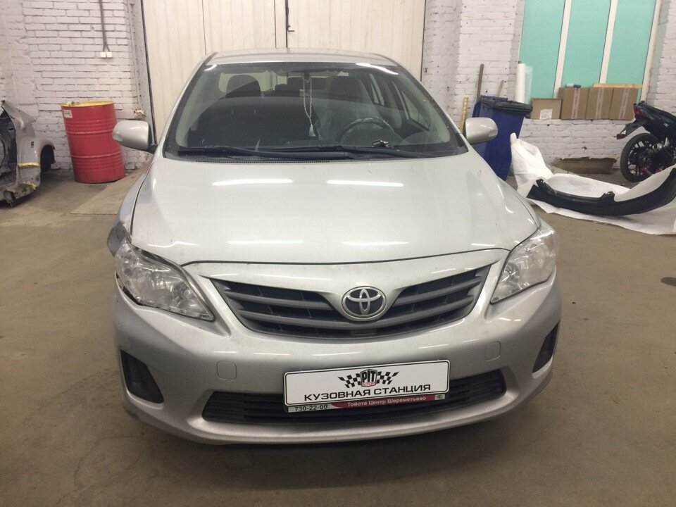 Дорогие друзья! Добрый день! Предлагаем Вашему вниманию отчёт о проделанной работе по кузовному ремонту а/м Toyota Corolla, который в результате ДТП получил довольно неприятный удар в правую переднюю сторону. Повезло только, что в результате удара не был задет капот и он остался абсолютно невредимым! Автомобиль к нам поступил в таком виде (фото прилагаем): По результатам внешней дефектовки было установлено, что переднее правое крыло однозначно на замену, т.к. повреждение оно получило очень сильное. Бампер думали спасти, но когда его сняли, то обнаружили, что многие крепления вырваны, повреждения имеются с 2 (двух) сторон и клиент, учитывая эти факты, принял решение о замене бампера на новый. Также на данном автомобиле менялась правая передняя фара и клиент решил установить на свою машину передние противотуманные фары, которых не было в заводской комплектации. Все запчасти клиент приобретал в нашем интернет-магазине pitstopparts.ru. Также на данном автомобиле мы поправили немного