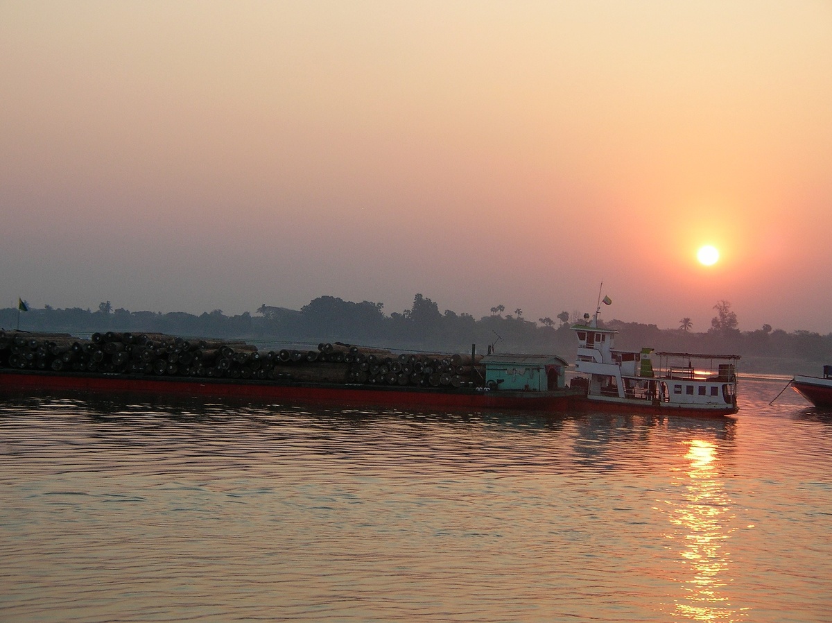 6. СПЛАВ ПО РЕКЕ. ЧАСЫ И ТРУСЫ. ЗАКАТ С ВЫСОТЫ. С большим трудом мы встали в пол-пятого утра. Быстро выписавшись из гостиницы мы выскочили на улицу, где нас уже ожидал высокий бирманский мужчина на своей мини-мазде. До пристани мы долетели минут за 10, а там уже стоял корабль, на который текла маленькая струйка европейцев. Корабль представлял из себя небольшую круизную лодку с двумя палубами. Сначала мы сели на свои места, обозначенные в билетах. Но потом перебрались наверх, где и провели все путешествие. Иностранцы, попавшиеся нам в попутчики, были весьма разнообразны и колоритны. Основную часть туристов составляли пожилые французы, среди которых выделялся один длинноволосый, сразу прозванный нами Паганелем. Рядом с нами сидели три польских качка, работающих на компанию ред булл и их менеджер. Качков возили по стране и показывали на разных шоу. Два из них оказались разговорчивыми толковыми ребятами, интересующимися страной и знающими довольно много, а третий, самый здоровый и з