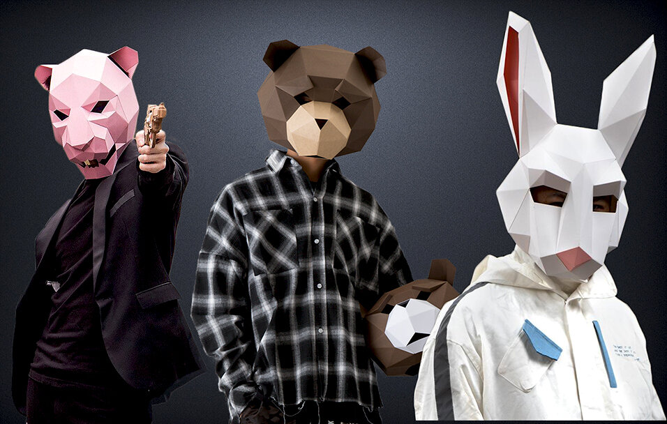 - Тот, который придется по вкусу широкой аудитории. Стилизованные геометрические 3D маски. Это объемные, но при этом практичные маски из прочн
