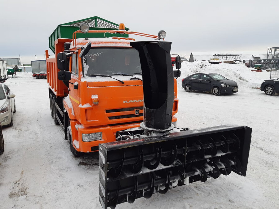 Филиал Компании «Традиция-К» в Санкт-Петербурге произвел установку и запуск навесного шнекороторного снегоочистителя Impulse SR2500 на нестандартный носитель — самосвал на базе КамАЗ с солепескоразбрасывателем в кузове. Гидравлической мощности предустановленной маслостанции с приводом от коробки отбора мощности (КОМ) достаточно, чтобы на малых скоростях движения эффективно проводить уборку снега и осуществлять обработку дорог противогололедной смесью. Снегоочиститель Impulse SR2500 имеет два шнека, которые обеспечивают уборку высоких буртов вдоль дороги, а также феноменальную дальность выброса снега — до 30 м. Оборудование позволяет убирать снег как в городе, так и на пригородных трассах. Возможность движения грузовой техники в общем потоке на приличные расстояния — это та способность, которую не дал бы шнекоротору ни один носитель из мира спецтехники. Можно сказать, что именно этому экземпляру наших снегоочистителей доведется попробовать на вкус самое широкое меню из снега