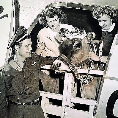 18 февраля - самая курьёзная дата в истории авиации. В этот день в 1930 году впервые воздушное пространство покорила корова. Бурёнка гернсийской породы по кличке Олли была рекордсменкой по надоям на Вязовой ферме около городка Бисмарк в штате Миссури. Её доили трижды в день и она давала больше 23 литров молока. Когда в соседнем Сент-Луисе решили провести Международную авиавыставку, организаторы договорились с местными фермерами о совместной рекламной акции. Олли, весившую больше тонны, погрузили в трёхмоторный аэроплан Ford, на котором она пролетела 72 мили до аэродрома, где проходило авиашоу. В полёте её подоили, расфасовали молоко в бумажные пакеты и сбросили их на крошечных парашютах над Сент-Луисом. Один из пакетов вручили Чарльзу Линдбергу - знаменитому авиатору, незадолго до этого в одиночку перелетевшему Атлантику. Олли, после того как к ней пришла всемирная слава, получила новую кличку - Королева неба. Турагентство "Клуб авантюристов". Путешествия, меняющие жизнь. http://a
