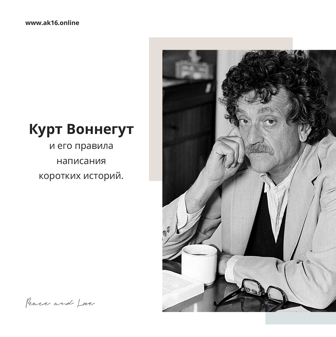 Писатель Курт Воннегут, которого любят несколько человек из нашей команды и все из нас, кто его читал, однажды поделился своими правилами по написанию коротких историй. 1. Используйте время вашего читателя так, чтобы он не пожалел ни об одной секунде. 2. Дайте читателю хотя бы одного персонажа, за которого он будет переживать. 3. Каждый персонаж должен чего-то хотеть. Даже если это стакан воды. 4. Каждое предложение должно выполнять одну из двух функций: раскрывать характер персонажа или разворачивать действие романа. 5. Будьте садистом. Не важно, насколько мил и невинен ваш персонаж – сделайте так, чтобы с ним случались самые ужасные вещи. Так читатель сможет увидеть, каковы на самом деле ваши персонажи, что у них внутри. 6. Пишите историю так, чтобы она понравилась одному человеку. Не надо хотеть понравиться всем – истории от этого погибают.