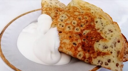 Пахнет весной и... блинами! Такие пышные блины пекла еще моя бабушка. Румяные, необыкновенно нежные и мягкие с глубокими дырочками... можно кушать с маслом, сметаной, с вареньем, джемом, свежими или морожеными ягодами и медом, с мороженым и вареньем... Очень вкусны горячие блины, прямо со сковородки. Все привыкли к тонким и ажурным блинчикам, а эти пышные блины занимают почетное место в списке моих рецептов блинов. Бабушкины я не пробовала, но мамины невероятно вкусные, всем нравятся! Такие блины очень быстро печь, на сковороду диаметром 20см уходит целый половник теста на 1 блин. Исчезают такие блины тоже с огромной скоростью, зато съел пару блинов: и сыт и доволен. Состав: Молоко - 1,25 литра, яйцо - 2 шт, масло растительное - 7 ст.ложек, дрожжи сырые - 0,5 ч.ложки, сахар - 5 ст.ложек, соль - 0,5 ч.ложки, сода пищевая - 0,5 ч.ложки, мука примерно 3-4 стакана, смотрим по консистенции. Способ приготовления: Готовим опару обычно вечером: в чашку выливаем 1 стакан теплого молока доб