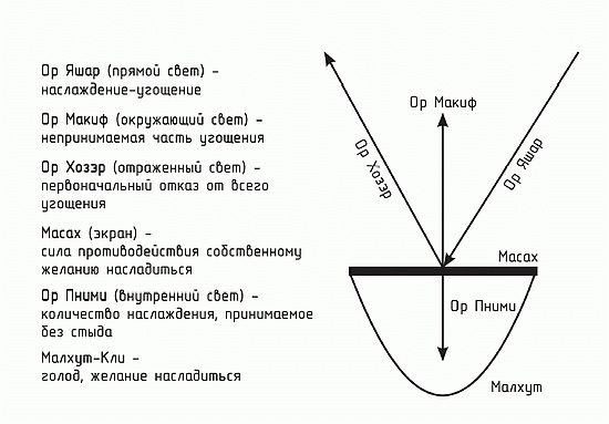 Практически все просветлённые признают, что в основе мира лежит простой белый свет. Так откуда тогда берётся всё остальное, что мы видим? В одной древней науке есть объяснение, как это возникает. По этой логике Свет проходит четыре стадии распространения создавая всё. В кратце это происходит так: Свет это по сути желание дать кому-то удовольствие - желание насладить. Первая стадия. Для того чтобы было кого насладить свет создаёт свободное от себя-света пространство - по сути желание наслаждаться или получать наслаждение. Вторая стадия. Это пустое пространство начинает наслаждаться. То есть получать в себя изначальный Свет. Третья стадия. Поглощая Свет оно осознаёт, что высшее наслаждение заключается в том, чтобы наслаждать, а не наслаждаться. Для этого оно исторгает из себя Свет. Четвёртая стадия. Таким образом создаётся подвижная граница между Светом-Творцом-Креатором и его творением или другими словами, между Светом и отсутствием Света. Эту границу называют Экран. Так вот прочность