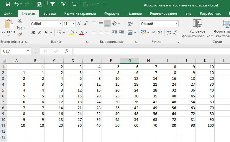 Excel: Абсолютные и относительные ссылки. Таблица Пифагора