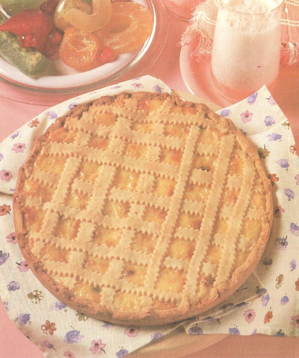 Рикотта, Султанины и цукаты являются основными ингредиентами для этого восхитительного пирога. Время приготовления: 30 мин Время выпечки: 35-40 мин Индигриенты 100 г сливочного масла 100 г сахара 1-2 чайных ложки молока 1 яйцо 225 г муки Взбитые сливки для сервировки Для заливки 360 г измельченного миндаля 215 г сахарной пудры 3 белка Полтары столовой ложки полу-сухое Шерри Рецепт Перемешать масло и сахар до пены. Перемешать молоко и яйцо и добавить муку ножом. Возможно чуть больше молока добавить, чтобы тесто можно раскатывать. Добавить целлофан намотать и на 30 мин. положите в холодильник. Разогреть духовку до 180 градусов. Для начинки смешайте миндаль и сахарную пудру. Взбить яичный белок и добавить орех-сахар смесь. Добавить шерри и аккуратно размешать. Накрыть холодной крышкой. Раскатать 2/3 тигля, выложить форму 23 - см торта. Распределить заливку по ней. Раскатать оставшееся тесто, нарезать полоски шириной 1 см и положить в сетку на начинку. Торт 35-40 Мин. выпекать, затем