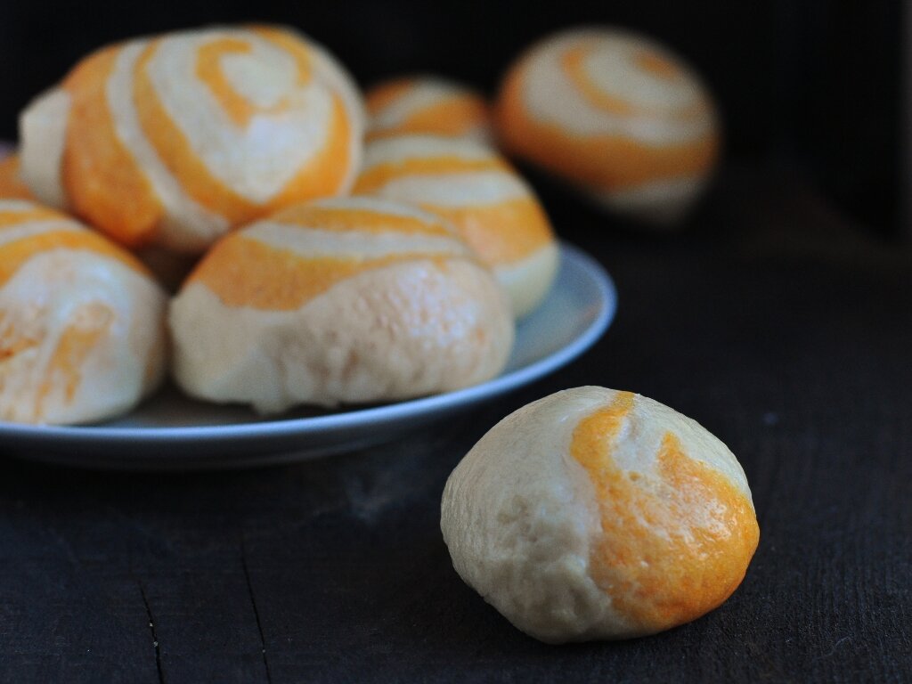 Когда я впервые попала в китайский ресторан, я была удивлена национальной китайской кухней. Во многих блюдах там можно услышать корень имбиря, овощи приготовлены аль денте, соевый соус тоже почти везде. И как обязательный компонент стола - паровые китайские пампушки. Они не перебивают вкус блюд, и их удобно макать в соусы. Давно хотела приготовить и вот рецепт попал мне в руки. Пампушки получаются по вкусу точь в точь как в китайском ресторане. У меня получилось 20 пампушек. Ингредиенты: ☑ 750 г муки, ☑ 200 г тыквы, ☑ 14 г сухих дрожжей, ☑ соль по вкусу, ☑ вода - 130 мл.