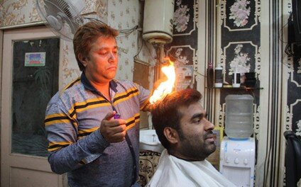 Поиск и разработка инновационных техник стрижки или укладки всегда будет присутствовать в работе профессиональных парикмахеров. Некоторые предприимчивые мастера отваживаются на странные и экстремальные виды, которые, несмотря на это пользуются спросом. Вот некоторые из них. Огненная стрижка из Индии Эта техника для поистине смелых личностей, но несмотря на это, на стрижку огнем в Индии предварительно записываются. Сначала наносится специальное вещество, которое не дает сгореть волосам, после чего они поджигаются. Пока пряди охвачены пламенем, мастер расчесывает их, придавая форму прическе. Процедура считается совершенно безопасной для клиентов. Горячие стрижки из Пакистана и Палестины Пакистанский парикмахер Шафкат Раджуп поджигает волосы клиентов, а затем ловко орудует расческой и ножницами, пока те горят. Недалеко ушел и мастер из палестины, который поджигает волосы аэрозольным баллончиком, эмитирующий огнемет, а после, расчесывает горящую голову двумя расческами. Зажигалка в Кал