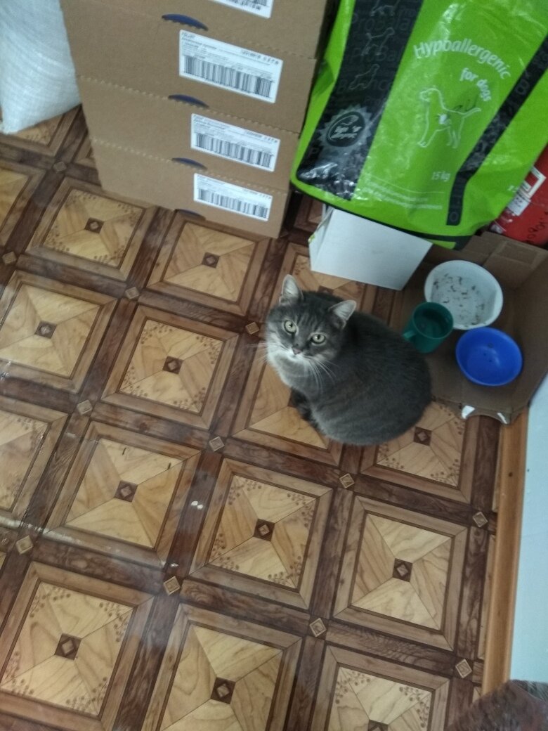 Котик абсолютно ручной и даже робкий мальчик, по всей видимости бывшедомашний, но в какой-то момент ставший ненужным. С жадностью накинулся на мягкий корм переменно закусывая сухим. На следующий день была по плану обработка от паразитов, а также водные процедуры. Как и всегда, нужда в продуктах питания для животных.