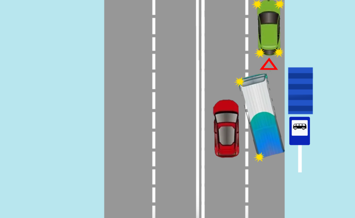 Усложняет ситуацию то, что остановка не оборудована карманом. Такое положение вещей абсолютно не редко. В итоге водителю автобуса нужно с правой полосы, на которой находится остановка, сразу же выехать на левую. Он включает поворотник, но по левой полосе уже мчится красная легковушка, которая не собирается уступать. А должна ли?