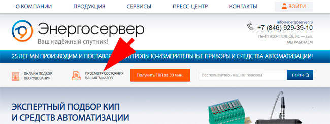 Для того, чтобы помочь нашим заказчикам своевременно получать подобную информацию, на нашем сайте www.energoserver.ru существует специальный сервис, позволяющий отследить статус заказа онлайн: теперь Вы можете самостоятельно и в любой момент проконтролировать, оплачен ли Ваш заказ, запущен ли он в работу, узнать дату готовности заказа к отгрузке, а также «скачать» сопроводительные документы. Для активации сервиса просто пройдите по ссылке «Просмотр состояния ваших заказов»: Как это работает Начиная с 2011 года все наши заказчики получают счета, в самом низу которого указан спец
