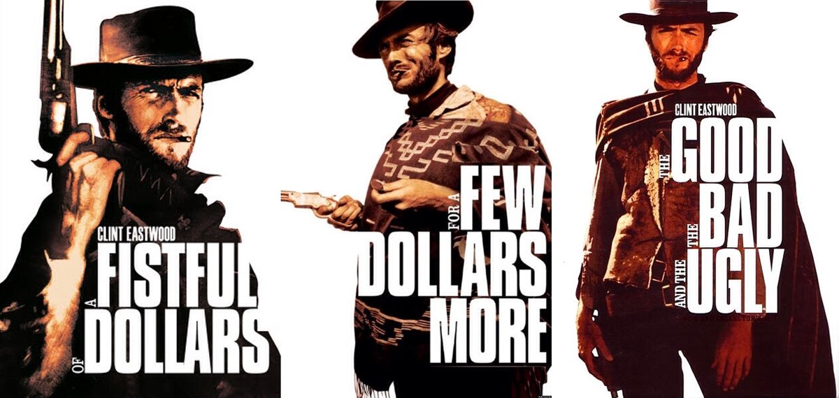 Долларовая трилогия — это три, что ни на есть, классических спагетти-вестерна главную роль в которых сыграл известный Клинт Иствуд, получив популярность и народную любовь благодаря своей харизме и сотрудничеству с Серджио Леоне. Именно его знаменитый прищур и стал лицом всех вестернов того периода.