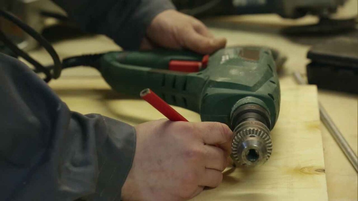 Учитывая немалую стоимость токарного станка, есть смысл потратить время на то, чтобы сделать его своими руками. Чтобы сделать основу для фиксации дрели, следует приложить дрель к листу фанеры и нанести разметку карандашом. Вырезать детали (опоры) при помощи пилы. Зафиксировать опоры для дрели к основанию саморезами. При фиксации дрели важно, чтобы сверло, вставленное в дрель, было параллельно основанию (так же, как на профессиональном токарном станке). При помощи деревянных брусков и магнитной ленты зафиксировать дрель на основании Для изготовления зажимной части станка от куска бруса отпилить отрезок 20 сантиметров. От листа фанеры отпилить полоску, приблизительно равную ширине бруса, она будет служить дополнительным упором для зажимного механизма станка. Зафиксировать брус на полоску фанеры. В ответной зажимной части станка засверлить отверстие. Для этого вставить сверло в дрель. Установить заготовку и просверлить отверстие. Перовым сверлом расширить отверстие