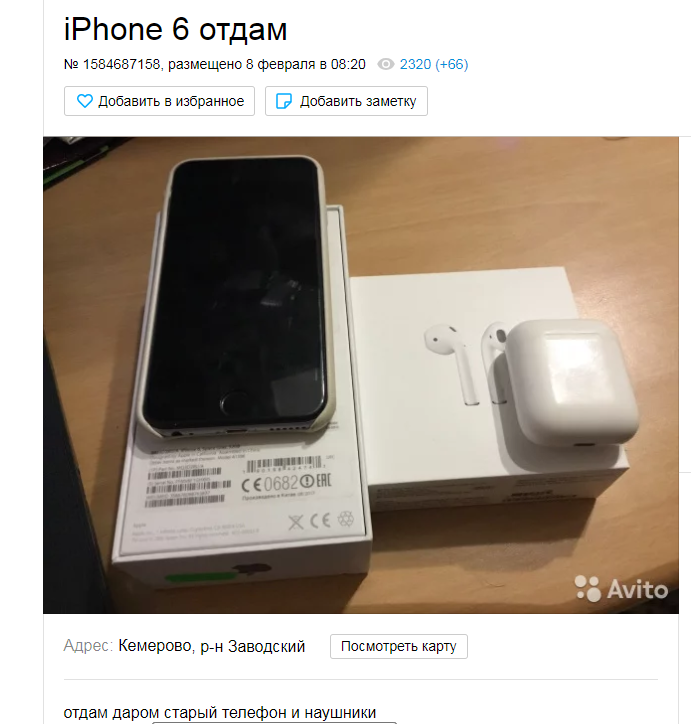 Часто натыкаетесь на объявления, где отдают даром какую-то хорошую вещь? Думаете, в мире много богатых и очень добрых людей, чтобы бесплатно раздаривать технику, машины и породистых животных? К сожалению, нет. Рассказываем, в чем таится подвох таких объявлений. Как выглядят эти объявления Новую хорошую вещь бесплатно без какого-либо умысла никто не отдаст. Бесплатный сыр только в мышеловке. Это аксиома. Запомните. Поэтому отзывы на эти бесплатные объявления выглядят примерно так: Я увидела объявление о том, что отдается даром айфон. Поэтому написала продавцу и он сказал, что отдаст, но нужно будет заплатить за пересыл 800 рублей. Поэтому я перевела ему деньги. И два месяца никто не отвечает, ни денег, ни телефона. Это стандартная мошенническая схема. Вы платите за пересыл несуществующего товара, как и еще человек 50 таких же любителей дармовых вещей. В итоге в итоге у мошенника в кармане оказывается 50 тысяч рублей, а у вас ничего. При этом преступники поступают очень грамотно. Если в