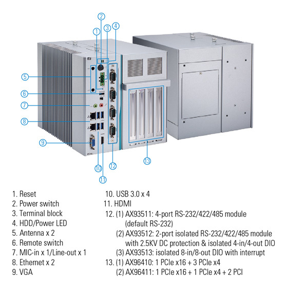 Axiomtek - всемирно известный лидер, преданный исследованиям, разработке и производству серии инновационных и надежных высокопроизводительных промышленных компьютерных продуктов - представляет IPC964-512-FL, 4-слотовый безвентиляторный ПК с модульной конструкцией и оптимизированными возможностями расширяемости. Прочный промышленный компьютер на базе чипсета Intel® Q170 поддерживает высокопроизводительные процессоры 7-го/6-гопоколения Intel® Core™ и Celeron® (кодовое название архитектуры: Kaby Lake/Skylake). У него есть слоты для модулей ввода/вывода, а для этих слотов есть три различных типа модулей ввода/вывода, которые клиенты могут подбирать в зависимости от своих потребностей. Кроме того, четыре слота PCI/PCIe предоставляют еще более широкие возможности, что позволяет поддерживать дополнительные карты расширения. Благодаря инновационной модульной механической конструкции IPC964-512-FL клиенты могут быстро устанавливать или менять модули, таким образом создавая собственные решени