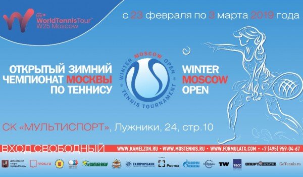 С 23 февраля по 3 марта 2019 года в спортивном клубе «Мультиспорт» ОК «Лужники» (Лужники, 24, стр. 10) пройдет Открытый зимний чемпионат Москвы по теннису «Винтер Москоу Опен 2019». В рамках мероприятия пройдёт женский профессиональный турнир календаря ITF и мужской турнир I категории Российского теннисного тура календаря Федерации тенниса России. Для участия в Москву прибудут 120 игроков (женщины) из 18 стран: Россия, Белоруссия, Украина, Узбекистан, Австрия, Сербия, Казахстан, Венгрия, Румыния, Чехия, Турция, Хорватия, Италия, Испания, Словакия, Македония, Бельгия, Франция. Москву на соревнованиях будет представлять Ольга Дорошина. В мужском турнире примут участие спортсмены из 18 городов России (Москва, Санкт-Петербург, Казань, Самара, Балашиха, Владивавказ, Дмитров, Коломна, Королев, Липкцк, Люберцы, Одинцово, Протвино, Реутов, Рязань Саранск, Химки, Шахты). Начало соревнований ежедневно в 10:00. 2 марта в 14:00 состоится финал парного турнира. 3 марта в 11:00 и 12:30 пройдут