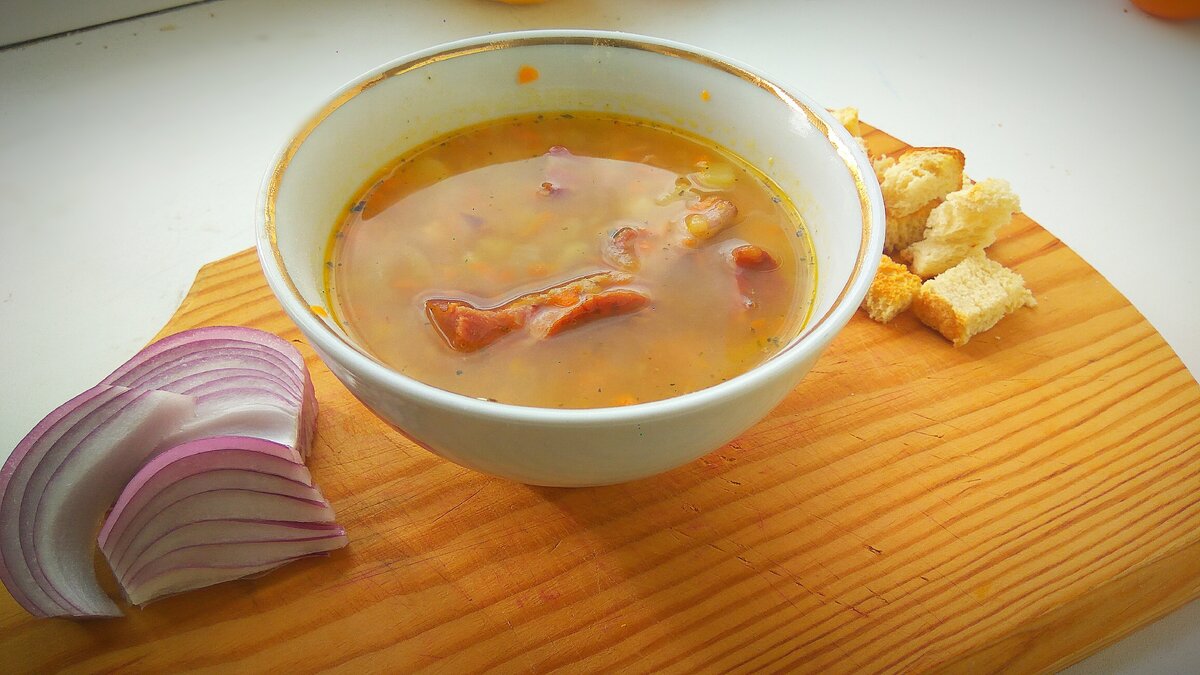 Сразу скажу, что в некоторых случаях к приготовлению этого супа нужно готовиться заранее. Если вы используете цельный сушеный горох, замочите его на ночь в теплой (не горячей) воде. Если используете колотый, можно обойтись и без этого.