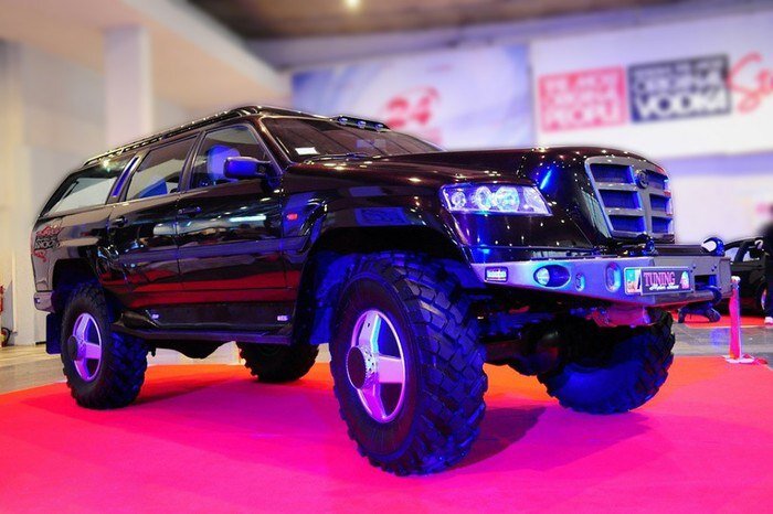 Можно бесконечно смотреть на три вещи: как течёт вода, горит огонь и как наши народные умельцы дорабатывают заводские автомобили превращая их в интересные тюнинг- проекты. Одним из таких проектов стал "Бизон", который появился на свет благодаря вполне понятному желанию проезжать везде и не замечать плохого дорожного покрытия под колесами. Изучив рынок, конструкторы решили строить свой внедорожник на базе знаменитого грузовика ГАЗ-66. На покупке одной лишь "шишиги" решили не останавливаться и под раздачу попал Пассат Б4, который поделился своими дверьми и дверными проемами, задними фарами и даже элементами салона. Есть в автомобиле и частичка Ауди. Если присмотреться, то можно узнать передние фары популярной Ауди А6. Все остальные элементы кузова пришлось изготавливать самостоятельно, но получилось очень самобытно и качественно. Большому автомобилю полагался такой же большой топливный бак. Поэтому вооружившись 1,2 мм нержавейкой, сварщики сделали 120 литровый бак, которого должно хва