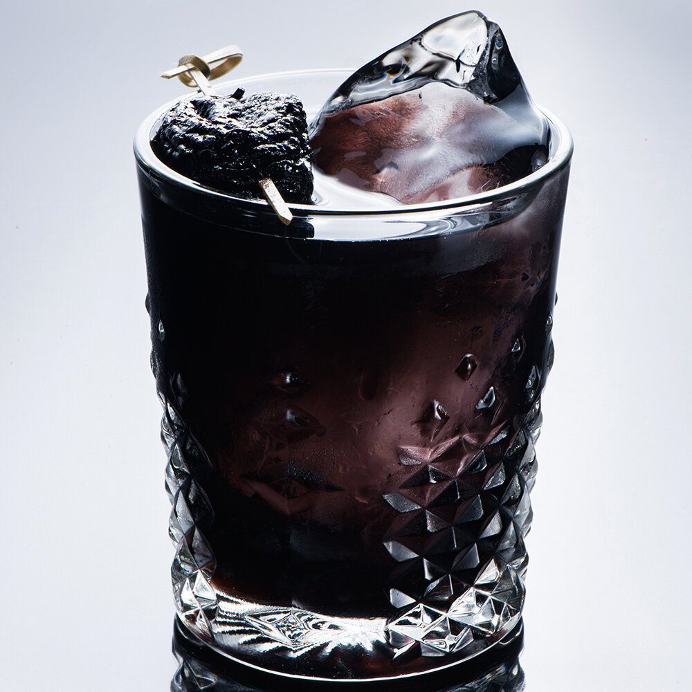 Тёмный ром - 2 частиСухой вермут - 1 часть Ежевика - для украшения
