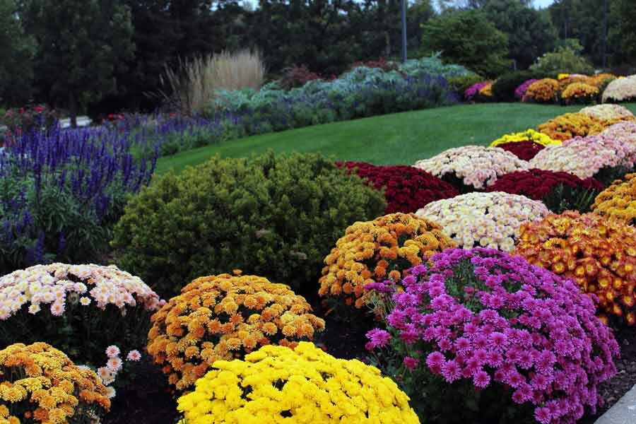 В саду до поздней осени радуют глаз своим разнообразием соцветий и яркостью красок – хризантемы. Для посадки хризантемы необходимо выбрать солнечное сухое место, приподнятое над грунтовыми водами. Она предпочитает в меру рыхлый и плодородный грунт с нейтральной кислотностью. В зависимости от высоты сорта растения, расстояние между ними колеблется от 30 см до 60 см. Высокие сорта хризантем требуют подвязки. Чаще всего для посадки используются уже укоренённые черенки и взрослые растения в горшочках с закрытой корневой системой. Поэтому высадку можно производить в течение всего летнего периода. Растения нужно притенять после посадки несколько дней от жарких солнечных лучей. Подкормки органическими и минеральными удобрениями проводятся до и после цветения. В осенний период хризантемы лучше не сажать, так как они могут не успеть укорениться до зимы и погибнут. Более неприхотливы мелкоцветковые многолетние хризантемы. Они легче переносят зимовку в открытом грунте, но нуждаются в укры