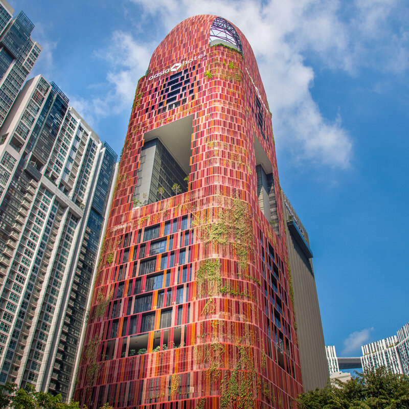 Использование природных материалов — тренд столетия. Если пару-тройку веков назад альтернативы этому просто не было, то сейчас эко-фасады зданий на острие стиля. Красивейшим из построенных небоскребов планеты в 2017 году, по версии Emporis Skyscraper Award, стало здание Oasia Hotel Downtown. Его «фишка» — уникальный зеленый фасад, причем не в переносном, а в самом прямом смысле. И некоторые этажи здания, и внешняя поверхность стен представляют собой продуманную систему садов.