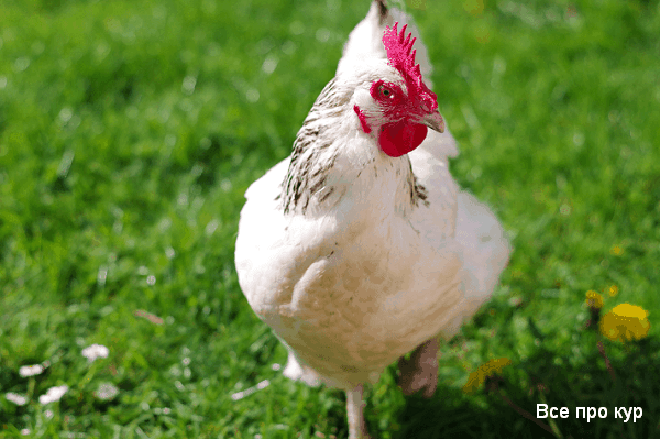 Курочки такого цвета имеют обычное белое без примеси других цветов оперение.