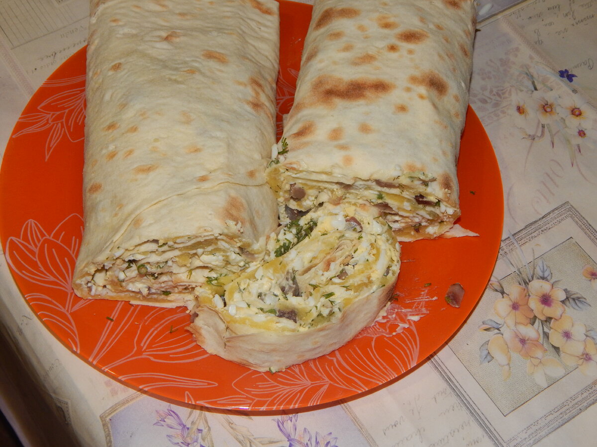 Друзья сегодня расскажу рецепт приготовления очень вкусной закуски из сельди в лаваше. Готовится она очень быстро и просто. Для приготовления нам понадобятся следующие ингредиенты. 1 тонкий лаваш, 1 солёная сельдь, 3 картофелины, 3 яйца, плавленый сыр из ванночки, зелень укропа, соль, перец по вкусу. Приступим к приготовлению. Яйца сварить в крутую, охладить, очистить, нарубить кубиками или натереть на тёрке. Картофель отварить, охладить, очистить, натереть на тёрке. Солёную сельдь очистить, разделить на филе, вынуть кости, нарезать кубиками. Зелень укропа мелко нарубить. Лаваш положить на ровную поверхность. Смазать плавленым сыром. Сверху выложить натёртый картофель. Затем яйца и сельдь. Посыпать всё зеленью укропа. Сверху можно слегка смазать майонезом. Лаваш скрутить в рулет и дать постоять в холодильнике. Наше блюдо готово приятного аппетита!!! Друзья поставьте лайк подпишитесь на канал и не забудьте поделиться с друзьями!!!!