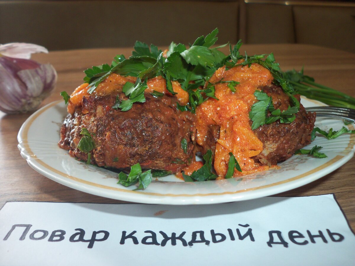 Можно есть без гарнира, как самостоятельное блюдо, присыпав зеленью. Ингредиенты: Для фарша: 150 г рисовой крупы (получится около 300 г отварного риса) 500 г свино-говяжего фарша 1 яйцо 1 небольшая луковица 2 зубчика чеснока соль, молотый черный перец по вкусу Для соуса: 1 средняя морковь 300 мл томатного сока 2 ст л муки 2 ст л с горкой сметаны 2 ст л подсолнечного масла соль, черный молотый перец по вкусу масло подсолнечное для смазывания формы зелень для украшения готового блюда. Пошаговое приготовление: Шаг 1 Нужно взять указанное количество рисовой крупы - это чуть больше, чем пол-стакана. Шаг 2 Рис заливаем водой, хорошенько перемешиваем и сливаем воду. Так нужно сделать несколько раз. Шаг 3 Теперь ее нужно отварить. Что бы она не превратилась в скользкую кашеобразную массу, а была сухой и рассыпчатой я делаю так: высыпаю промытый рис в марлевый отрез и связываю свободные концы, что бы по