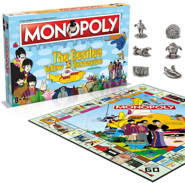 Монополия представляет тематическую игру по мотивам Битлз, чтобы отпраздновать 50-летие Yellow Submarine. Совершите путешествие на 80,000 лье под водой, отправьтесь в неземной рай, известный как Пепперленд! 6 коллекционных оловянных жетонов! Тематические фишки здесь - это Old Fred, Sgt Pepper Drum, Dreadful Flying Glove, Jeremy Hillary Boob, Love Sign и собственно Yellow Submarine. Необычная и незабываемая желтая подводная лодка внесла замечательные образы в это специальное издание одной из самых любимых настольных игр в мире. Желтая субмарина выходит благодаря сделке, заключенной британским лицензионным агентом Кэролайн Миклер, Apple Corps, и Hasbro. Специальный выпуск популярной игры празднует 50-летие анимационного фильма" Желтая подводная лодка".