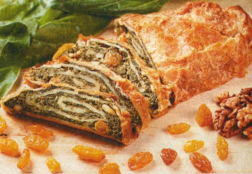 Штрудель с щавелем, грецкими орехами и изюмом для хорошего и доброго дня.
