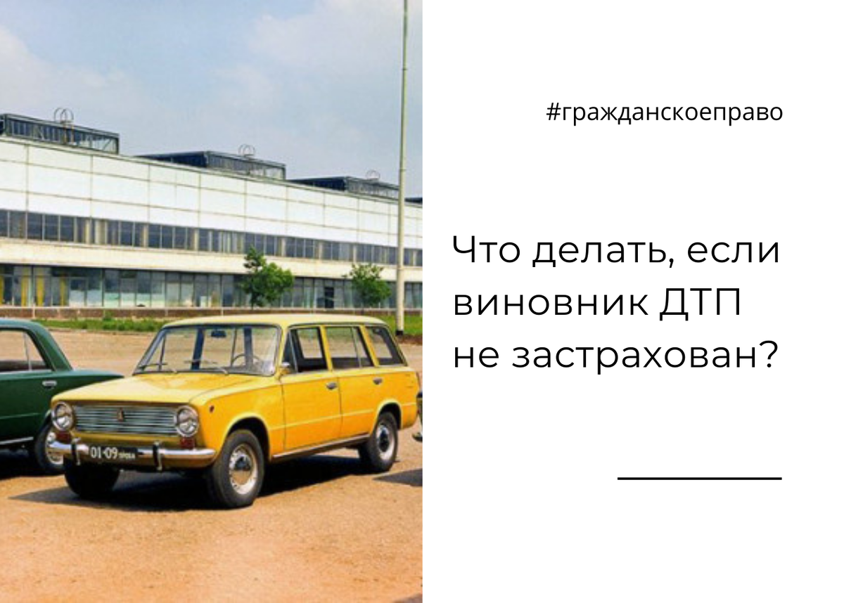 Если виновник ДТП не застрахован по ОСАГО, то возникают определенные трудности у потерпевшего в получении возмещения вреда. Данное обстоятельство исключает возможность потерпевшего предъявить требование о возмещении вреда, причиненного его имуществу в страховую компанию, которая застраховала гражданскую ответственность потерпевшего (прямое возмещение убытков, ст.14.1. ФЗ «Об ОСАГО»). В этой ситуации обращаемся в порядке, который предусмотрен гражданским законодательством. То есть обращение к виновнику с претензией, а далее с иском о возмещении вреда. Порядок действий: 1.Оценка ущерба. Для этого необходимо обратиться к любому оценщику, которого найдете. С виновника можно взыскивать не только стоимость ремонта и запасных частей, но и утраченную товарную стоимость. 2.Предъявление претензии виновнику ДТП. Можем предъявить лично, в двух экземплярах, один останется на руках с отметкой о принятии. А лучше отправить почтой, заказным письмом…квитанцию не выбрасываем, храним. В претензии ука