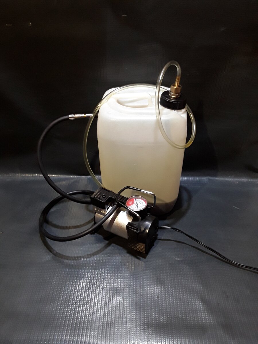 Можно сделать самому, из канистры. Из металлической, разумеется, лучше, но здесь рассмотрим полиэтиленовую. Полноценной замены нагнетателя, само-собой, не получится, но для обслуживания одного - двух автомобилей вполне можно использовать.