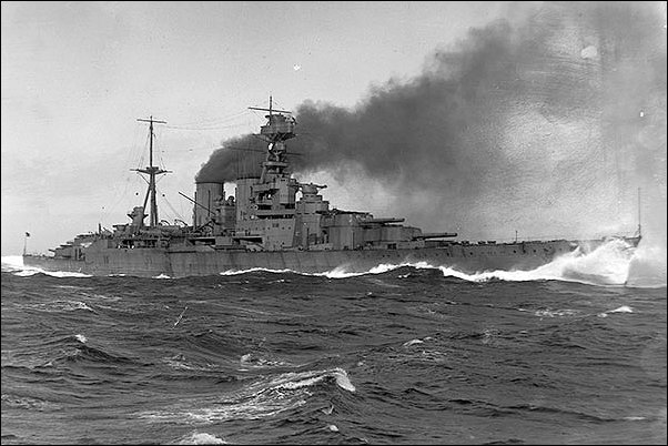 На снимке британский линейный крейсер "Худ". Накрытый залпом "Бисмарка" , крейсер пошёл ко дну через три минуты, спаслись только трое, а 1415 без разбора - адмирал ли, кок или артиллерист, разделили судьбу своего корабля.
