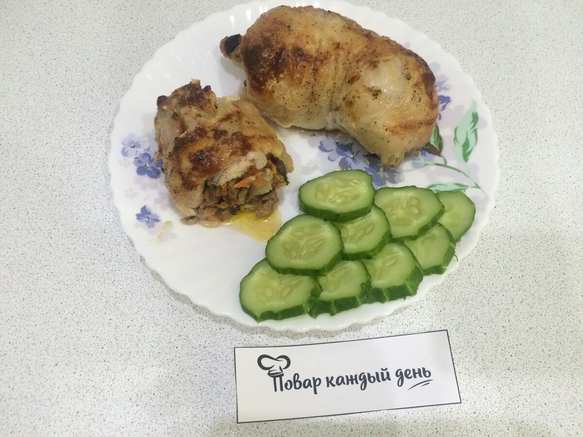 Простые фаршированные окорочка запеченные с грибами в духовке