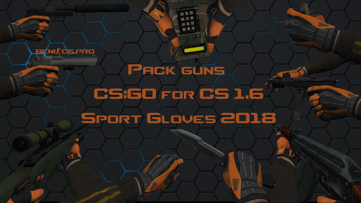 Новый пак оружия из CS:GO с моделями рук sport gloves 2018 для cs 1.6
