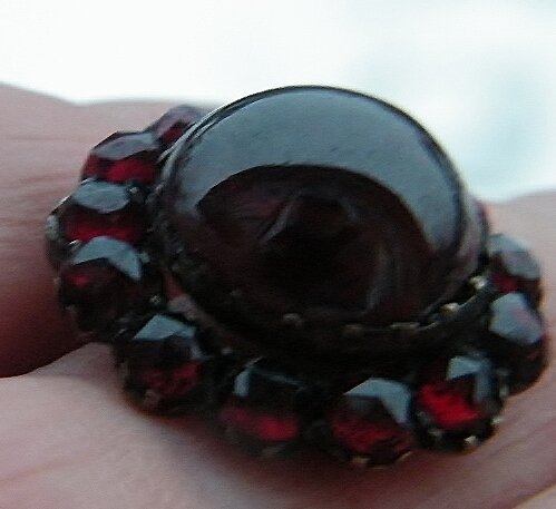 красоту богемских гранатов нельзя переоценить .И если у Вас случайно в шкатулке нашлась брошь или кольцо ,то вам повезло. Гранаты ,что на моих фото старинной огранки -сверху острым шипом. если огранка другая,то она более поздняя .В СССР было много украшений из Чехии и сейчас цена на них высока.Узнать действительно ли у вас настоящие гранаты можно по темному цвету камня и его свечению как бы угольком .Имитация имеет стеклянный блеск ,сколы и камни закреплены тонкими латунными лапками.