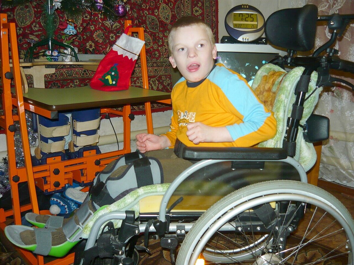 Знакомьтесь - Даниил Винник (Алтайский край), 14 лет. Диагноз: слепота и ДЦП Каждый день у Дани проходит одинаково. Это у нас с Вами сегодня музей, а завтра лыжи... Просыпается он часов в 9, сначала делает с мамой небольшую расслабляющую гимнастику, а потом завтракает. Это у нас с Вами яичница или бутерброды, или шведский стол... или капуччино... А Даню мамочка кормит с ложечки протертой пищей. После завтрака Даня обычно сидит за своим любимым столиком и играет с игрушками. Но чтобы он попал за этот столик, мама должна на руках поднять его и донести. Он не видит и не ходит! Потом предусмотрены массаж и прочие укрепляющие мероприятия, но тут по настроению Дани - смотря к чему он будет сегодня расположен в первую очередь. А ведь у него еще и куча сопутствующих заболеваний, в том числе и эпилепсия со всеми вытекающими отсюда последствиями. Мама старается все делать с сыном в игровой форме. После занятий у Дани свободное время, когда он делает что хочет. Вот чем мы с Вами можем зан
