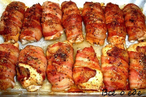 Эти блюда просты в приготовлении и не требуют больших затрат, но в то же время их будет не стыдно подать на стол гостям. Рулетики из куриного филе и бекона Для этого блюда нам понадобится: - Куриные грудки – 2 шт. - Бекон сырокопченый – 8 ломтиков - Сыр твердый – 200 г. - Шампиньоны свежие - 3 шт. - Петрушка нарубленная – 1 ст. ложка - Укроп нарубленный – 1 ст. ложка -Соль, перец по вкусу Итак, приступаем к приготовлению. Нарезать филе на тонкие ломтики, отбить, посолить, поперчить. Оставить на 15 минут. Пока филе маринуется, займемся начинкой. Сыр натереть на крупной терке, смешать с зеленью и нарезанными грибами. Заворачиваем начинку в филе, получаются рулетики. Сворачивать нужно как можно плотнее. Далее каждый рулетик завернуть в бекон. Разогреваем духовку до 180 градусов. На смазанную маслом форму выкладываем рулеты и запекаем около 30 минут. Получается очень вкусно и недорого. Приятного аппетита! Салат "Свежесть" Для приготовления данного блюда нам понадобиться: Итак, приступ