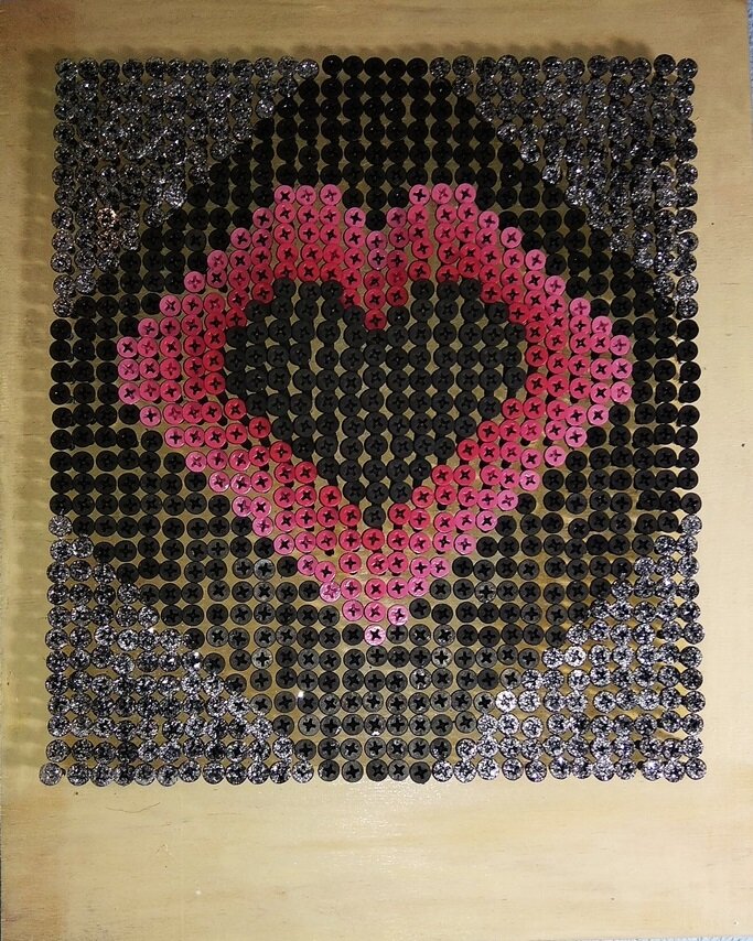 Картина - «Сердечко» из саморезов, Мозаика «Сердечко» выполнена в технике Screw Art. Screw Art или картина из шурупов – это современный вид искусства. Screw Art объединяет в себе общие черты картины и скульптуры. Картина создана и выполнена своими руками, hand made. Для работы использовано 957 саморезов. Размер картины 30*37 см. Художественное панно будет прекрасным подарком для Ваших любимых. Ваша картина будет единственной в своем роде. Картина из шурупов – удивительный, оригинальный, яркий подарок для друзей, коллег который не останется незамеченным, панно станет достойным украшением дома и офиса и врежется в память на долгие годы. Это идеальный подарок для ценителей эксклюзивных и необычных вещей. Хотите выделится?! Закажите себе картину в необычной технике! Телефоны для связи: