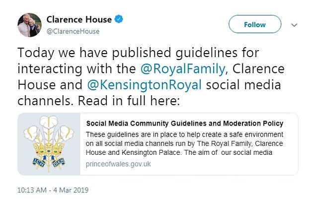 Официальный королевский сайт опубликовал новые правила о поведении в социальных сетях. Дворец просит не публиковать «непристойные, оскорбительные, угрожающие, оскорбительные, ненавистные, подстрекательские или пропагандистские материалы, а также содержащие намеки на насилие сексуального характера». Кроме того, сообщается, что аккаунты Королевской семьи будут блокировать"тролей", оставляющих оскорбительные комментарии в адрес Кейт Миддлтон или Меган Маркл, а также удалять "непристойные и угрожающие" комментарии. Напомним, что в январе этого года Кенсингтонский дворец уже писал на тему оскорблений в соцсетях. Только тогда писали, что сотрудники Кенсингтонского дворца проводят многие часы, удаляя оскорбительные комментарии в адрес Меган, без упоминания Кейт. И вот теперь следующий этап. Кенсингтонский дворец обещает сообщать в полицию о самых злостных комментаторах. «Мы просим всех, кто участвует в наших социальных сетях, проявлять вежливость, доброту и уважение ко всем остальным членам