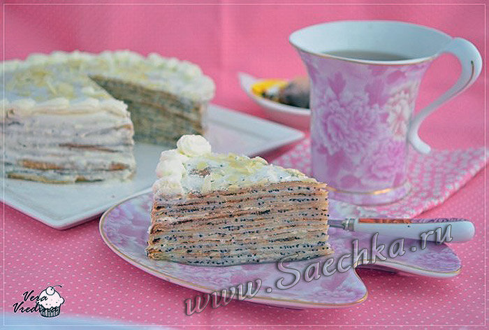 Блинный торт приготовлен с маковым заварным кремом - необычно, сытно и вкусно.