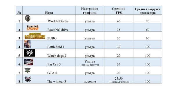 Ram 8gb Итоговая таблица