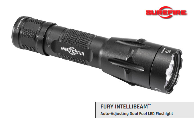 Компания SureFire выпустила новое дополнение в линейке среднеформатных компактных фонарей Fury выходом модели Fury Intellibeam, позволяющей, также как и предшественники, использовать два типа источника питания, но с системой интеллектуальной подсветки. Размеры новинки остались те же, что и на тактическом предшественнике, который мог использовать литиево-ионные батареи стандарта 18650 или двух 123A, названной системой Dual fuel. Корпус изготовлен из авиационного алюминия с противоскользящими насечками и анодированием военного класса прочности Mil-Spec. Крупная формовка в виде желобов на блоке излучателя препятствуют вращению по оси на плоскости, а выступающая "корона" защищает стекло от ударов. Фирменная технология новинки — IntelliBeam от предшественника P2X Fury IntelliBeam, использует сенсор и систему, основанную на микропроцессоре, которые непрерывно оценивают и регулируют исходящий световой поток, исходя из анализа окружающего света. Такая система плавно настраивается на оптимальны