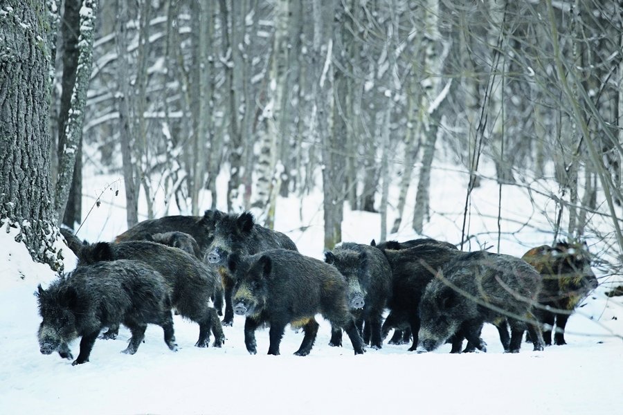 Как мы стадо кабанов по деревне ловили. Те заборы жителям сносили. Охотники их спугнули в лесу.